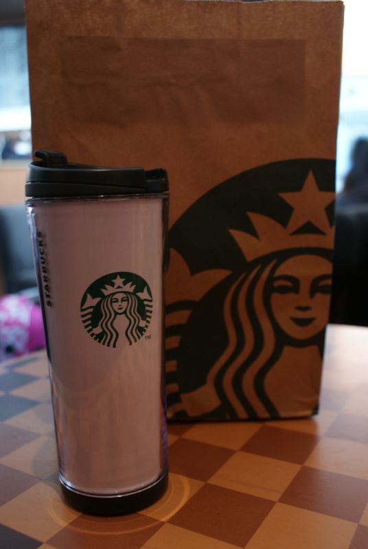 Paluumatkalla Brysselin lentokentällä käytiin Starbucksin kahvilassa. Ostin samalla itselleni Starbucks-termosmukin. Se on tosi kätevä ottaa kylminä talviaamuina mukaan kouluun ensimmäiselle tunnille ja hörppiä lämmikettä 🙂