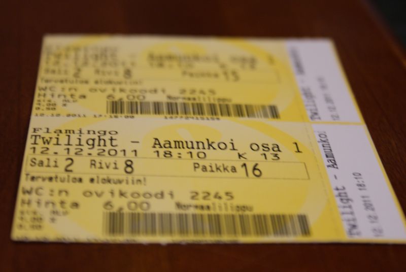 Viikolla ajeltiin ystäväni kanssa Jumbon Flamingoon elokuviin. Olimme suunnitelleet jo varmaan kaksi kuukautta, että Edwardia ja Jacobia on pakko mennä katsomaan, kun uusin Aamunkoi-leffa ilmestyy. Maanantaina 12. päivä Finnkinossa olikin sopivasti Superpäivät ja leffalippu maksoi vain 6 e ja kaupanpäälle saimme vielä minisipsipussit – harmi etten syö juurikaan sipsiä. Varsin mukava yllätys kuitenkin tällaiselle pennittömälle opiskelijalle (vaikka äitihän minua sponssaa aika hyvin :-D).