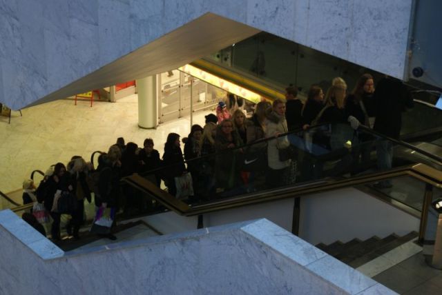 Moni muukin oli tullut viettämään tätä kulutusjuhlaa ja törsäämään joululahjarahoja. Ihmisiä oli paljon. Manasin, etten lähde tänä vuonna kyllä enää alennusmyynteihin. Intersportissakin sai kaksin käsin taistella viimeisistä Niken s-kokoisista urheilurintsikoista (-50%), jotka kovan kamppailun päätteeksi osoittautuivat kuitenkin likaisiksi, meikkivoiteen tahraamiksi, yök. Luovutin ne sitten suosiolla muille. Mutta kuinkas kävikään, kotona facebookissa odotti ystävän pyyntö lähteä perjantaina minnekäs muualle kuin alennysmyynneille, Helsinkiin. Kunhan tässä saa taas pari päivää lepuutettua hermoja niin kyllähän sitä taas kaupoille lähtee 😀 Tai sitten keskityn enemmänkin kahviloiden tarjontaan.