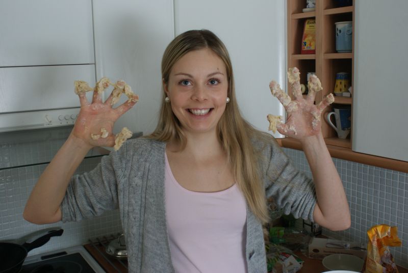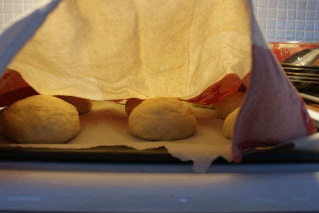 Pullien pyörittely okäy todellakin urheilusuorituksesta (ainakin minun lihaksillani hah!). Välillä piti pitää pieni breikki ja testata oliko taikina onnistunutta. Ja eikös se niin mennyt, että tosikokki maistelee koko ajan tuotostaan?;)