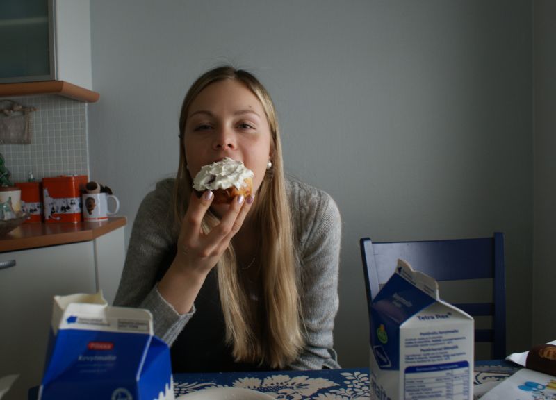 Itse asiassa tavallisen pullataikinan tekeminen on ihan hirmu yksinkertaista ja helppoa, suhteellisen nopeaa myös. Tällaisen valaistumisen koin vaivatessani taikinaa. Kaiken lisäksi tulee paljon halvemmaksi leipoa itse herkut, noin ihan yleensäkin. Eineksetkin käyvät kukkaron päälle, jos niitä vetelee joka päivä ruoaksi. Terveellisyydessäkin taitavat hävitä 6-0 kotitekoiselle ruoalle – mausta puhumattakaan! Tällaisia asioita olen (tai on täytynyt) pohtinut viime aikoina. Omaan kotiin muutto häämöttää jo ja henkisesti alan valmistautumaan jo askeettiseen elämään: ei kuukausittaista shoppailua (toivottavasti edes vuotuista) ja uusia vaatteita, ei ulkona syömistä ja lörpöttelyhetkiä kahvilassa, eikä varmaankaan edes kallista (opiskelijan budjetille) Total-jugurttia, vaan vain Valion mälsiä tavisjugurtteja. Niin kuka sanoi, että opiskeluaika on ihmisen parasta aikaa elämässä?