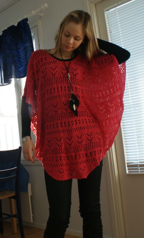 Vihdoin kuvia paljon hehkuttamastani kevätponchosta – vai mikä neule onkaan. Kuitenkin, koekäytin sitä ensimmäistä kertaa eilen, kun menin valmennuskurssin infotilaisuuteen Helsinkiin Markkinointi-Instituutille. Oli muuten loistava päällä<3 Nyt hiukan kylmemmällä alla voi pitää pitkähihaista trikoopaitaa, mutta kevään edetessä pärjää lyhythihaisella (ihan niin villiksi en heittäydy, että ilman paitaa sen pukisin…). Neuleen sivuissa on oivalliset napit, joiden ansiosta vaate istuu hyvin, eikä näytä teltalta.