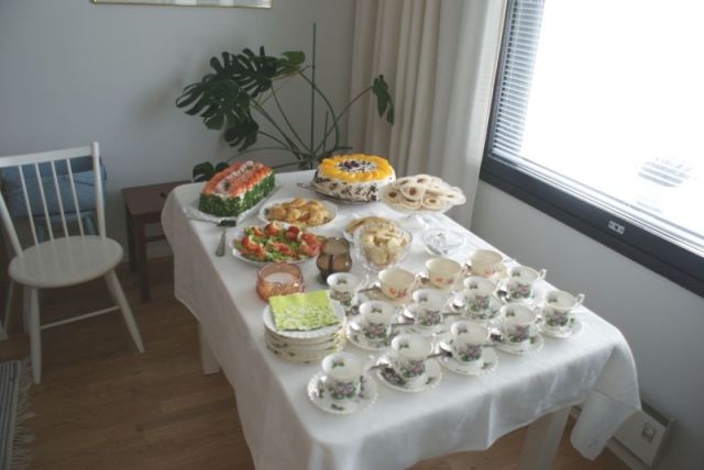 Ihan yhtä runsailla eväillä en ylioppilaskirjoituksiin lähtenyt, lieneekö siinä syy epäonnistumiseen? Kuvat ovat sunnuntailta, kun olimme viettämässä Ässän mummin 80-vuotissyntymäpäiviä. Joudutte tyytymään minun pärstääni, sillä en halua julkaista kuvia muista vieraista ilman heidän lupaansa. Oli muuten supermummi leiponut täytekakun ja muut tarjottavat (lukuunottamatta voileipäkakkua) ihan itse! Ylpeänä voin kertoa syöneeni täytekakun palan ja kahvia – aivan kuin kuka tahansa vieras:)