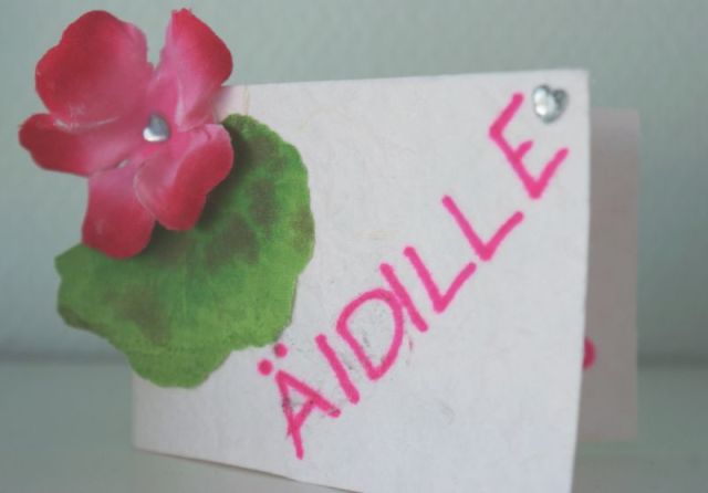 Ehdinpä askarrella aamulla äidille kortinkin. Ja kyllä, pomppasin sängystä jo kuudelta, kuten minulla on tätä nykyä jokaisena aamuna tapana. Vähän harmitti, kun muistin valkovuokot vasta kannettuani aamupalan äidille sänkyyn.