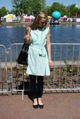 Kuulimme myös loistavaa musiikkia. Aikuinen nainenhan se siellä lavalla heiluu, heh. Jammailtiin hetki Paulan tahtiin, meidän takana muusikista nautti muuten Mikko Kuustonen:D Lähdettiin sitten aika pian keskustaan kaupoille metsästämään yo-mekkooni luonnonvalkoista, ohutta boleroa ja oli muuten aikamoinen urakka! Onneksi Santun kauluspaita löytyi kuitenkin helposti.