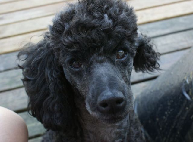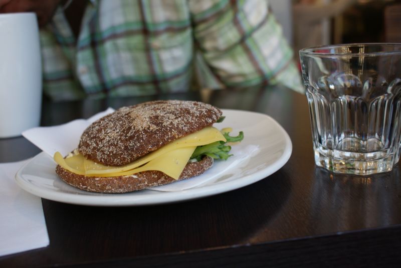 …ja samalla yritin todistella hauvalle, että aamupalaleivät juustoineen todella menivät jo (minun) mahaan. Huomatkaa kuka on käynyt parturissa eilen!