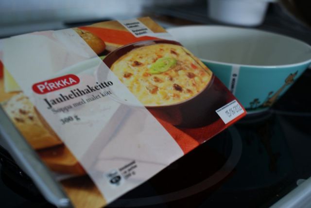 Lenkin jälkeen oli järkyttävä nälkä aikaisen aamupalan vuoksi, joten söin (laiskuudessani) valmiskeittoa höystettynä raejuustolla ennen juna-asemalle lähtöä.