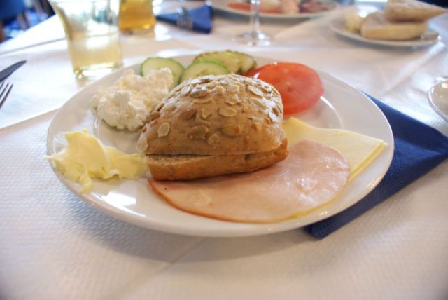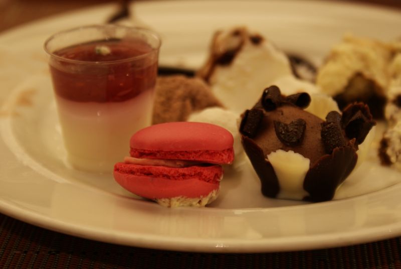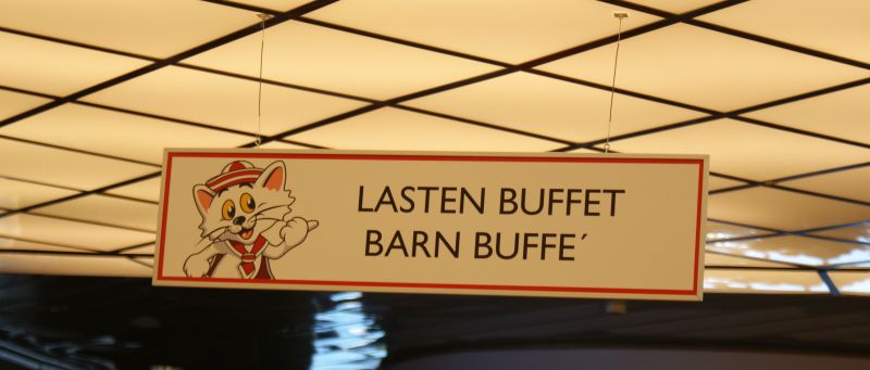 Ruoka laivan buffetissa oli todellinen yllätys kaikille. Onhan se aina ollut äidin sanoin ihan hyvää, mutta nyt tarjoilu oli kyllä yllättävän hyvää. Menu oli uudistunut ja esillepano oli todellakin siistimpää ja ennenkaikkea järkevämpää. Isojen, leikattavien kakkukasojen ja ruokavuorien sijasta oli pieniä annospaloja, joiden ansiosta tarjoilu pysyi koko ajan siistinä ja (ainakin minun kammoamilta) rähmäisiltä sörsseleiltä vältyttiin. Ja olihan se ruoka maukasta, namii!