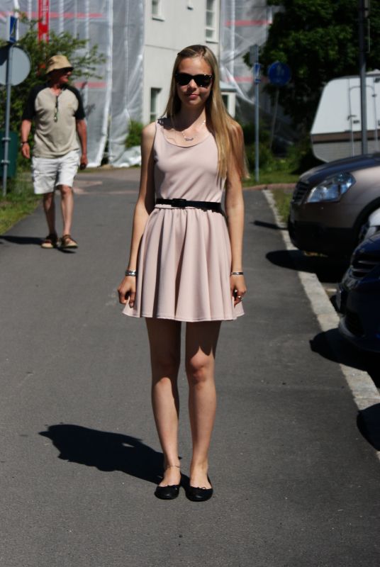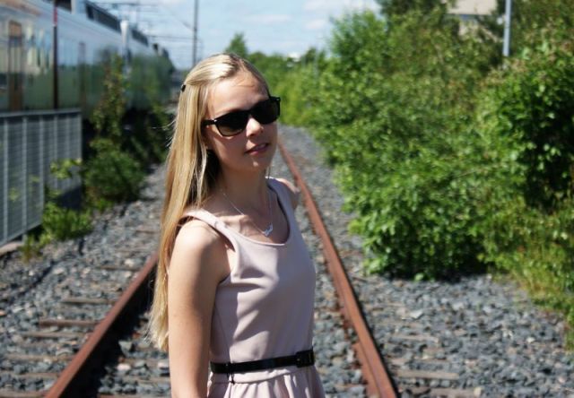 Perjantaina, lähtöpäivänä, sää oli taivaallinen: lämpöä ja aurinkoa ja hymysuita. Minun kaltainen vilukissakaan ei viitsinyt turhaan peitellä jalkoja leggareilla, vaan paljain säärin lähdettiin matkaan. Päälleni puin viime talven Bryssel-reissulta ostamani mekon. Mielestäni se jotenkin henkii vanhaa aikaa. Hyvin yksinkertainen, mutta kaunis mekko ei seurakseen tarvinnut kuin mustat Vagabondin ballerinat ja aurinkolasit. Koruiksi valitsin uuden nimikoruni kaulaan (no nyt viimeistään olen kunnon bloggari, haha), luottokäsikorut sekä nilkkaan Vanamo-ketjun.