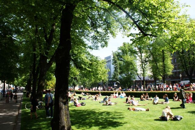 Kesäinen Helsinki on ihaninta, mitä tiedän: paljon ihmisiä, hyvää tuulta ja hymysuita, kansainvälisyyttä, puheensorinaa ja polttavia kesäkatuja. Olimme hyvissä ajoin liikkeessä, joten meillä oli kivasti aikaa hetki hengähtää Espan puistossa ja napata samalla äiti matkaan.