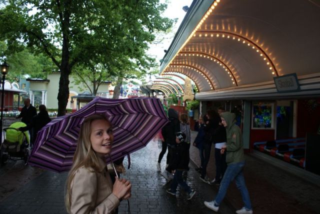 Tukholmassa sää ei suosinut meitä yhtälailla kuin lähtöpäivänä Helsingissä (myöhemmin kuulimme, että täällä Suomessa lauantai oli ollut täysi hellepäivä). Vettä tuli taivaalta paikoin aika reippaastikin, mutta ei annettu sen latistaa kesälomamatkaamme. Tyynesti vain ostettiin taxfreestä kolmas sateenvarjo minulle:) Hyvä sää on vain suhtautumiskysymys. Ja tämähän oli loistava tilaisuus testata, kuinka positiivisuusprojektini on edistyyt. No hyvin on edistynyt pienen pientä rakoilua lukuunottamatta:D