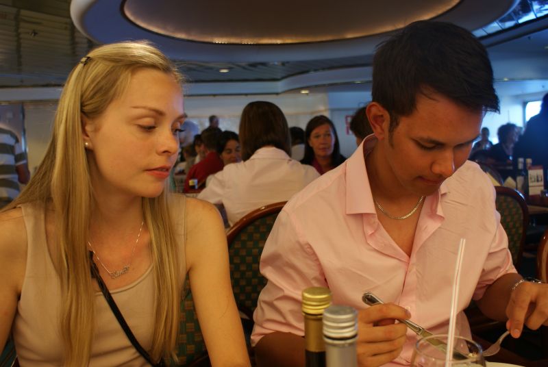 Ennen reissua Santtu taisi mainita jotain tähän tapaan: No matkalta odotan ruokaa, syömistä ja notkuvia buffapöytiä. Niin entäs ne romanttiset yökävelyt laivan kannella tai yhteiset muistelot kahde vuoden takaisesta reissusta? Noei, vitsi vitsinä, heha.