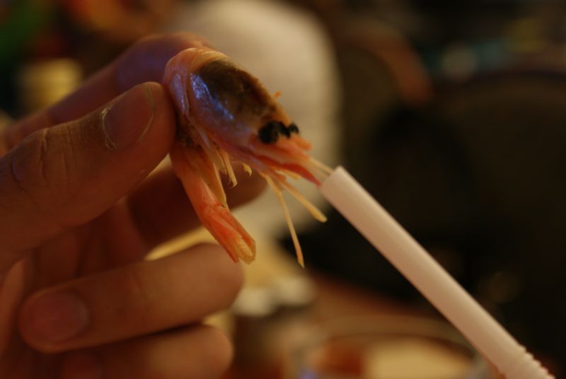 Tässä vaiheessa ruokailua äiti taisi todeta, että toivottavasti kukaan ei luule, että olen hänen seurassaan. Kunnon vitsiniekka tuo äiti, hehe. Omasta mielestäni laivan buffet ei nyt niin fiini paikka ole, etteikö siellä voisi ottaa paria kuvaa katkaravusta juomassa pillillä Pepsi maxia.