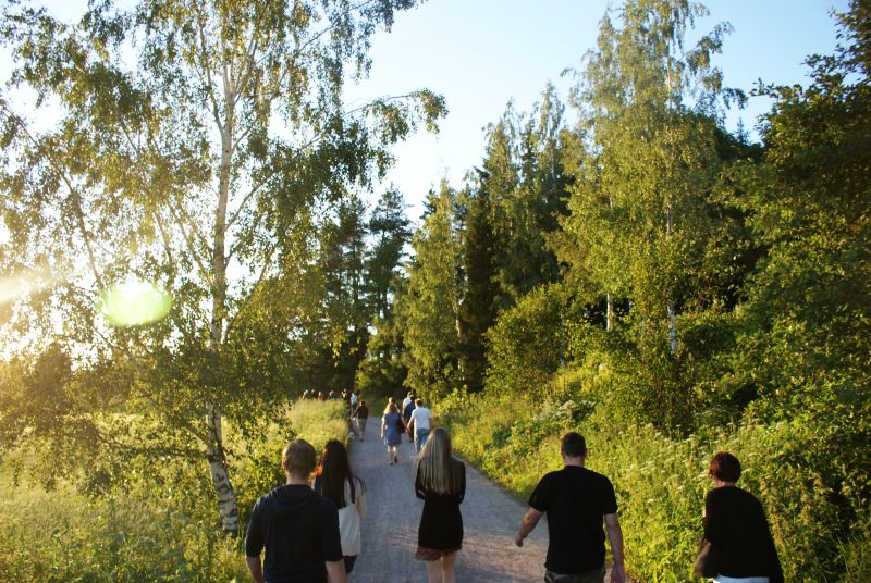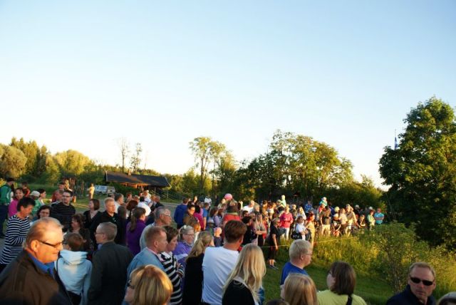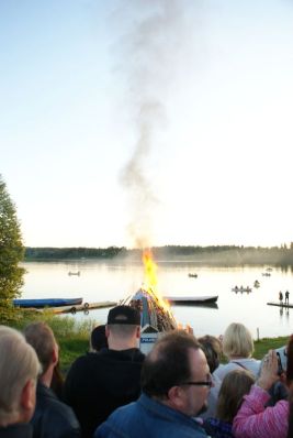 Mietittiin siinä kokon sytyttämistä odotellessa, miten hassua onkaan, että ihmiset kerääntyvät töllistelemään jotain palavaa lautakasaa ja juuri tänä tiettynä päivänä. Ja se kokkohan on aivan pakko nähdä joka juhannus, vaikka suoraan sanottuna aika moni näytti kovin vastentahtoiselta hyttysiä mäiskiessään kokon juurella. Ihmiset ovat hassuja. Me olemme hassuja. Mutta ehkä se on se perinne, jonka vuoksi keskikesän juhla ei ole kokonainen ilman sitä palavaa lautakyhäelmää.