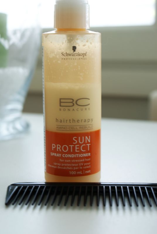 En ole tullut aiemmin ajatelleeksi, että myös hiukset kärsivät auringon uv-säteilystä. Ei sinänsä ole ihme, etten ole asiaan aiemmin kiinnittänyt huomiota, sillä olen kovin laiska käyttämään minkäänmoisia aurinkorasvoja. Emotionin myyjä sai kuitenkin myytyä minulle selvityssuihkeen lisäksi hiuksiin jätettävän sun protect -suihkeen, joka siis selvittämisen lisäksi suojaa hiusta auringolta. Tiedä sitten olenko vain taas kerran mainonnan uhri vai onko tuo suihke todella hintansa väärti. Paljoakaan siitä ei joka tapauksessa ole hyötyä, jos aurinko ei paista, kuten viime päivinä (viikkoina, kuukausina…) on tupannut käymään, haha. Että sitä Barcelonan matkaa odotellessa…:—D