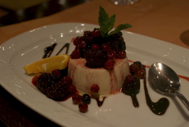 Marma valitsi jälkkäriksi pannacotan. Jälkiruoat olivat ihan uskomattoman herkullisen näköisiä ja hienosti koottu lautaselle. Harmitti, kun oma masu tuli pääruoasta jo niin täyteen, etten viitsinyt ottaa omaa jälkkäriannosta. Tosi kiva, kun tarjoilijakin näitä pöytään tuodessaan virnuili minulle ja kysyi, joko tulin katumapäälle, haha. Tyhmä, tyhmä vetämätön vatsa!!