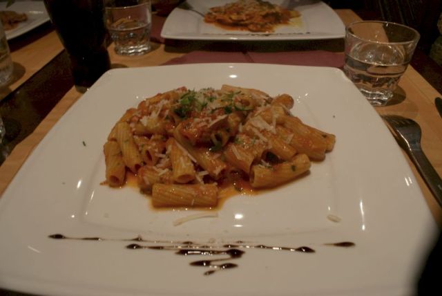Päätin testikäyttää laukkua ensimmäistä kertaa sunnuntaina, kun lähdettiin Flamingoon juhlistamaan edellisessä postauksessa jo mainitsemiani Rosan kaksikymppisiä. Ei muuten ollut vitsi se sivistynyt juhlinta. Kävimme ensin syömässä italialaisessa Il Siciliano -ravintolassa. Kun kerran kunnon italialaiseen päästiin, niin totta kai kaikki tilasivat pastaa – minä mukaan lukien. Itse otin tomaattipastaa. Yksinkertaisuuteen kallistuminen pätee muussakin kuin vaatteissa. Yksinkertainen on kaunista ja maukasta. Loput kolme leidiä ottivat kaikki pinaattitortellineja. Ruoka oli todella herkullista ja palvelu hyvää. Näin asiakaspalvelutyötä itsekin tekevänä olen alkanut kiinnittämään asiakkaiden kohteluun erityistä huomiota. Oli ihana päästä hiukan hienompaan ravintolaan s-ketjun rossojen ja amarillojen sijaan (vaikka ei niissäkään valittamista ole, paitsi ehkä niissä Rosson lihapullissa…;D). Tyttöjen mahoihin mahtui vielä jälkkäriäkin, mutta itse päädyin vain kahviin: vatsa oli hieman yllättynyt annoksesta pitkän pastatauon jälkeen, joten ajattelin, että leffateatterissa on mukavampi istua ilman sen suurempia vatsakipuja.