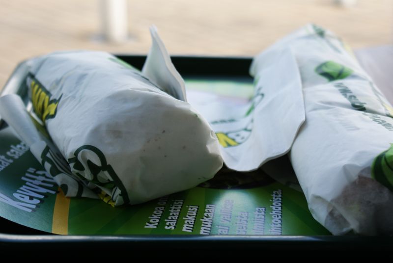 Subwayn patonkiin petyin kyllä hieman. Ajattelin makuelämyksen olevan vielä ihmeellisempi. Luulen syynä olevan sen, että odotan ulkonasyömiseltä vieläkin jotakin maailmaa mullistavaa, vaikka ruokaahan sekin on muiden joukossa. Ja asia tuli jälleen kerran huomattua. Siinä subia mutustaessani Santun vieressä ja vici-tatuointiani samalla katsellessani kaikki asiat tuntuivat olevan kohdillaan, jokainen palanen ikäänkuin paikallaan. Toisin sanoen tunsin itseni terveeksi.