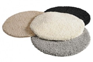 Alan ihan oikeasti uskoa kohta kohtaloon. Hyrylään ajellessani mielessäni syntyi ajatus pyöreän muotoisista pikkumatoista keittiön lattialle ja hieman suuremmista eteiseen sekä olohuoneeseen. Ja kuinka ollakaan, Sotkasta löysin alennuksella kymmenellä eurolla juuri täydelliset kaksi pyöreätä pikkukarvamattoa! Rahapussi kiitti, kun säästöä tuli useampi kymppi. Ja mikä oli Santun ensimmäinen kommentti: kuinkas liukkaat ne ovat, millainen pohja niissä on? Voi äh, käytännöllisyys aina ensimmäisenä mielessä. Päädyimme sitten kompromissiin ja ostamaan liukuesteet maton alle:D