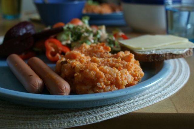 Lounaalla nälkä on aina suurin. Olen todella laiska kokki. Menen aina helpoimman kautta. Ruoka vaihteleekin lounaalla sekä päivällisellä ihan sen mukaan, mitä saan värkättyä. Tänään söin esimerkiksi porkkanalaatikkoa kananmunan ja raejuuston kera. Eilen porkkanalaatikkoa ja kalkkunanakkeja. Ihan vain sen vuoksi, että Atrian porkkanalaatikot olivat tarjouksessa, haha. Lautaselleni kuuluu aina kasa salaattia kastikkeineen sekä ruisleipä lähes poikkeuksetta juustolla.
