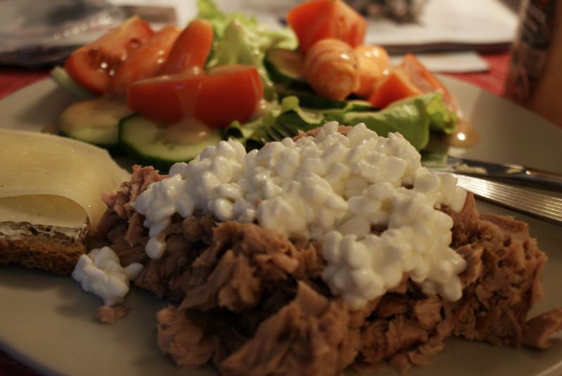 Päivällinen sujuu samaan tapaan kuin lounas. On luksusta, jos Santtu on pyöräyttänyt jonkin laatikon tai valmistanut kanakastiketta. Muutoin sorrun yleensä kippaamaan vain tonnikalapurkin lautaselle ja kasan raejuustoa päälle. Tai paistamaan munakkaan, jos oikein pinnistelen. Pussipuurotkin ovat aika käteviä:D No kyllä minäkin välillä saatan jotakin kokkailla. Tuntuu vain, että olen viime vuodet pyörinyt ihan riittämiin ruoan ympärillä, kiinnostus sitä kohtaan on ikään kuin lopahtanut – jos sitä itse syömishetkeä ei oteta lukuun, heh.