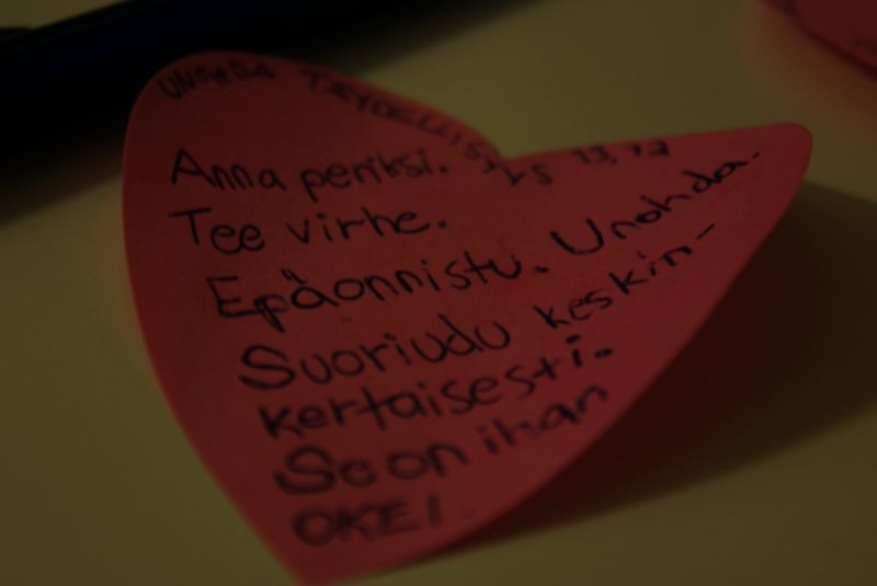 Uncategorized Luukku 13 13/12/201222/10/2016 Elina Minä valitsin kohdan ”anna periksi”. En alkanut väsäämään 12. luukkua eilen raahauduttuani rättiväsyneenä ylitöistä. Minkä sinä valitset? Jaa tämä: Jaa X:ssä(Avautuu uudessa ikkunassa) X Jaa Facebookissa(Avautuu uudessa ikkunassa) Facebook Tykkää Lataa... Aiheeseen liittyy Jaa tämä: Jaa X:ssä(Avautuu uudessa ikkunassa) X Jaa Facebookissa(Avautuu uudessa ikkunassa) Facebook Tykkää Lataa...
