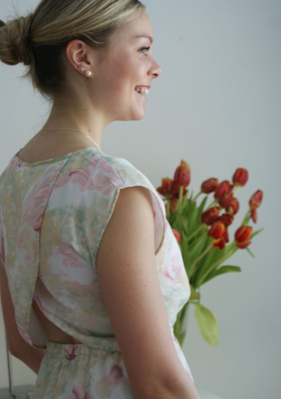 Lenkin jälkeen laittauduin ihmisen näköiseksi ja lähdimme syömään lounaaksi sushia. Laitoin päälleni uuden hameeni, jonka selkäosaa varsinkin rakastan. Auringonpaiste ja keväinen kuosi saivat mielen toiveikkaaksi: ehkä se lämpö tulee vielä joskus. Koska kyseessä oli siirretty naistenpäivä sekä kymppipäivämme, sain pitää lompakon laukussa ja annoin herrasmiehen tarjota.