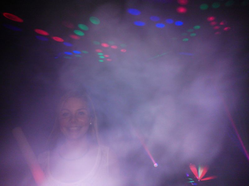 Ei kuvasta ehkä uskoisi, että aloitimme illan tavallisesta kerrostaloyksiöstä. Valoa ja musaa (tällä kertaa myös savukone) – ystävämme motto ja intohimo. Heh.