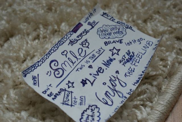 | Muistan kassalla tulleen kiire raapustellessani tätä kuittipaperille. Muistan kirjoittaneeni once sijaan ones ja thankful sijaan thankfull. 😀 |
