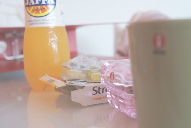 Aurinko pilkisti juuri pilvien takaa. Eilen puhuin myöskin flunssaisen työkaverini kanssa, kuinka suuri voima mielellä oikeasti on. Hän oli nimittäin päättänyt olla tulematta kipeäksi enempää. Saa nähdä, onko meitä sairaslomalaisia kaksi huomenna. Minä päätän nyt, että oloni lähtee kohenemaan. Istun tällä hetkellä keittiön jakkaralla ja nakerran dipattua miniporkkanaa. Olo on vähän säälittävä, kuitenkin hitusen parempi. Mistä sitten johtuukaan. Porkkanoita, rasiallinen mustikoita ja vihreää teetä. Ja Ibumax.