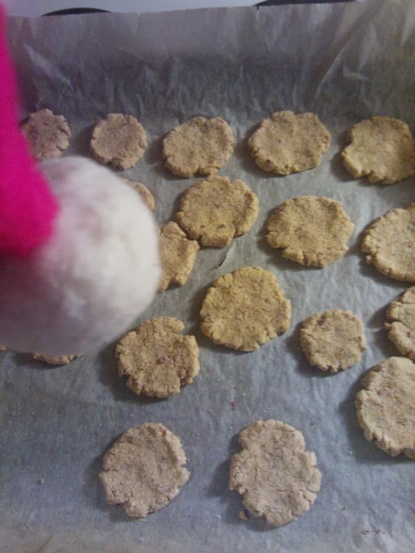 Tein Liinan ohjeella kikhernesuolakeksejä ja paketoin ne herkkujuuston kanssa joululahjaksi varamummilleni. 🙂